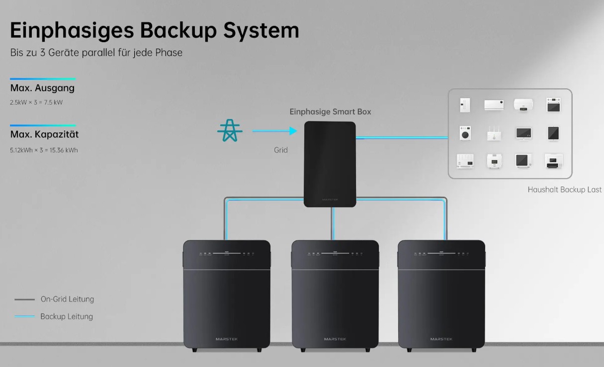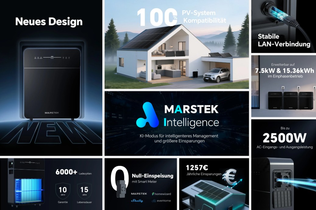 Ein besonderes Highlight ist der Zugang zu MARSTEK Intelligence, einem KI-basierten Modus für smartes Energiemanagement und maximale Kosteneinsparungen. Dank der modularen Erweiterbarkeit lässt sich die Kapazität auf bis zu 7,5 kW / 15,36 kWh erhöhen – ideal für alle, die ihre Photovoltaikanlage optimal nutzen möchten.